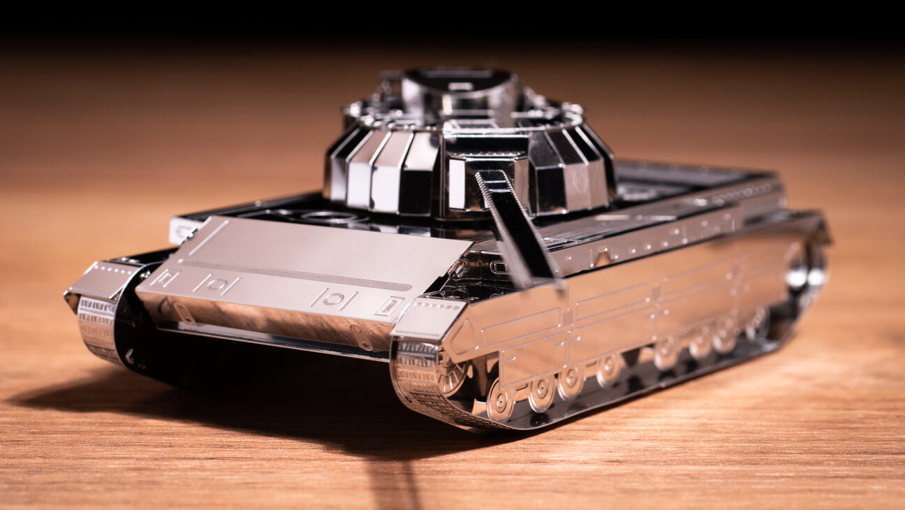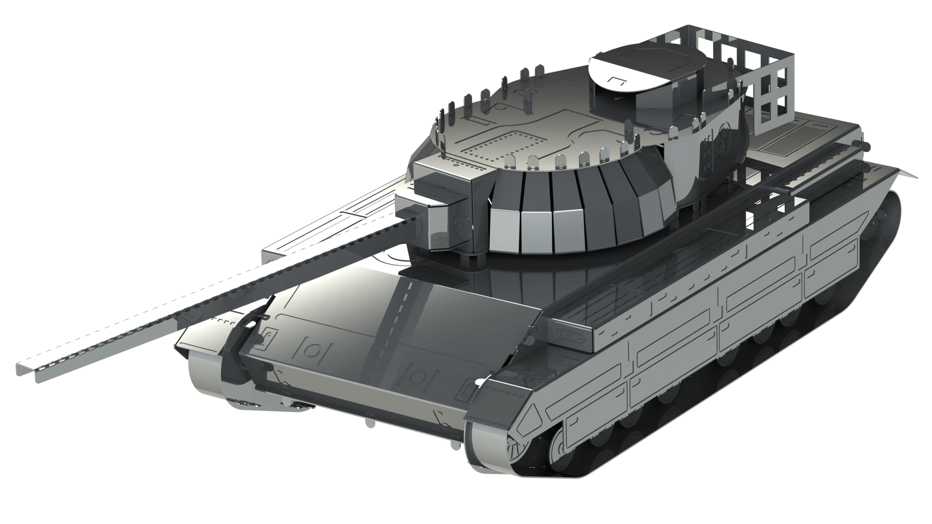 Το FV 214 "Conqueror" διαθέτει τον αναγνωρίσιμο σχεδιασμό ενός βαρέος άρματος μάχης: μοναδικό σχήμα πυργίσκου, μακρύ κύριο πυροβόλο, πολυβόλα, πυργίσκο διοικητή, καταπακτές, αποθήκη πυρομαχικών και σασί οκτώ κυλίνδρων με δύο κινητήριους τροχούς. Οι επιφάνειες είναι ανάγλυφες και χαραγμένες με ηλεκτροχημική χάραξη, κάνοντας το μοντέλο να μοιάζει με το αρχικό όχημα. Όλες οι λεπτομέρειες είναι κατασκευασμένες από ανοξείδωτο χάλυβα, ο οποίος χρησιμοποιείται στη βιομηχανία τροφίμων, τα καταναλωτικά αγαθά και τα παιχνίδια. Η ακριβής κοπή επιτρέπει τη συναρμολόγηση του μοντέλου χωρίς τη χρήση πρόσθετων εργαλείων, συγκόλλησης και κόλλησης.